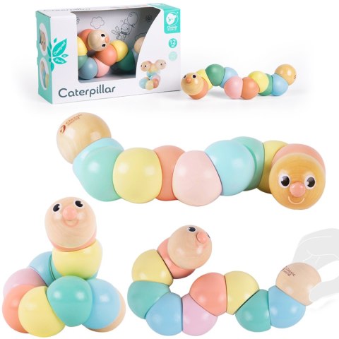Gąsienica marki Classic World to niewielka zabawka, która jest idealnych rozmiarów, by maluszek mógł swobodnie się nią bawić - zginać, skręcać, oraz układać w przeróżnych pozycjach. Gąsienica składa się z kolorowych segmentów, które połączone są ze sobą w taki sposób, by można było ją układać na wszelkie możliwe sposoby. Genialna drewniana zabawka, która wciąga na wiele godzin.