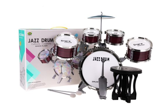 - perkusja z 5 bębnami, talerzem i zestawem pałeczek, - krzesełko. |