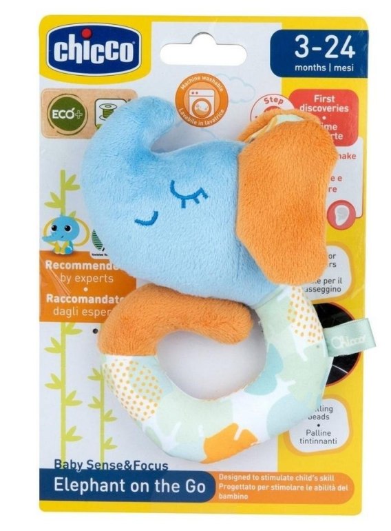 - Zabawne dźwięki: Potrząśnij Grzechotką Słonikiem, aby usłyszeć wesołe grzechotanie.