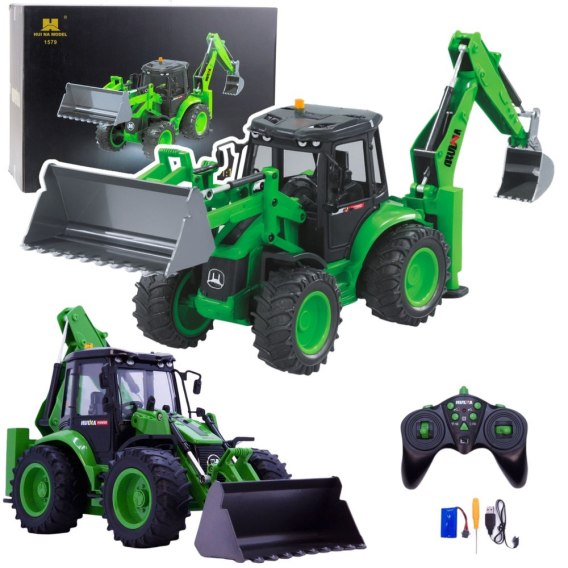 HUINA Koparko Ładowarka Zdalnie Sterowana RC Światła Dźwięk Zielona Huina 1:14