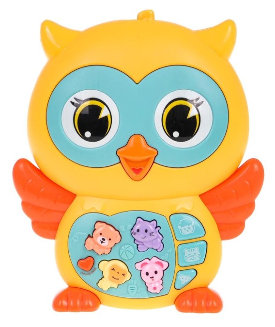 Interaktywna sowa z funkcją dźwięku i światła dla dzieci od 6-go miesiąca życia. Sowa wykonana została z najlepszej jakości plastiku, jest odporna na uderzenia i bezpieczna dla maluszków, nie posiada, żadnych ostrych krawędzi. Sowę wykonano w żywych kolorach, przyciągających wzrok dziecka i zachęcających do zabawy. Na brzuszku sowy znajduje się panelik z przyciskami uruchamiającymi odgłosy zwierząt (w pierwszym trybie), melodie, dźwięki Do-Re-Mi (w drugim trybie) oraz efekty świetlne w postaci migoczących światełek na skrzydełkach sowy. Tryby zmieniamy przyciskiem w kształcie serduszka. Zabawka posiada regulację głośności. Zasilana jest bateriami typu 2 x AA 1,5 V (brak w zestawie) Funkcje zabawki: - przeznaczona dla dzieci od 6-go miesiąca życia, - wykonana z najlepszej jakości plastiku w żywych kolorach, - bezpieczna, nie posiada ostrych krawędzi, - odporna na upadki, - efekty świetlne: podświetlane skrzydła sowy, - efekty dźwiękowe: * tryb z odgłosami zwierzątek: pieska, kotka, małpki, owieczki, tygrysa, słonia, * tryb z dźwiękami: melodie, dźwięki Do-Re-Mi. |