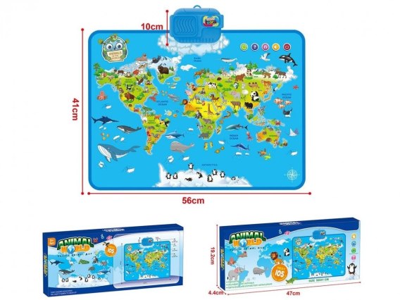 Interaktywna mapa zwierząt świata B/O 56x41cm color box rozm opak 47x4,4x19,2