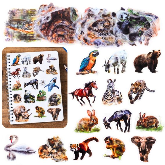- 50 sztuk naklejek z motywami dzikich zwierząt