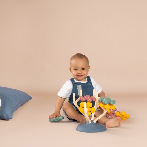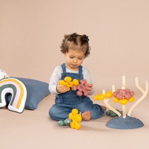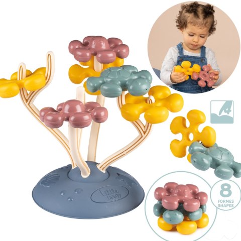 Drzewo Sensoryczne Zabawka Motoryczna od marki SMOBY to zabawka, która naturalnie wspiera rozwój sensoryczny i motoryczny dziecka. Jest odpowiednia dla maluchów od dwunastego miesiąca życia. Zabawka ma podstawę w kształcie koralowca, na której umieszczone są duże, kolorowe elementy. Na koralowcu można dowolnie układać i zamieniać miejscami osiem kształtów przypominających żółwia, ośmiornicę i kwiaty. Wielkość elementów jest dostosowana do małych rączek odkrywców. Zabawki są atestowane i wytrzymałe, co gwarantuje długą i bezpieczną zabawę.