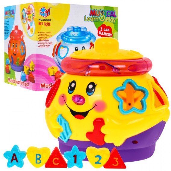 • Tańczący garnuszek z pokrywką 2w1 dla dzieci 18m+ Sorter kształtów + Interaktywne funkcje