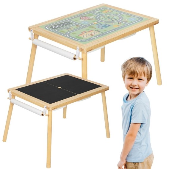 WOOPIE GREEN Drewniany Stolik Aktywności 4w1 Tablica Kredowa Pojemniki Mapa Miasta Papier Rysunkowy