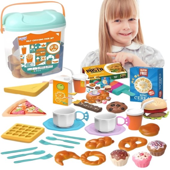 • - Zawiera imitacje słodyczy, deserów, śniadań oraz zestaw do herbaty/kawy